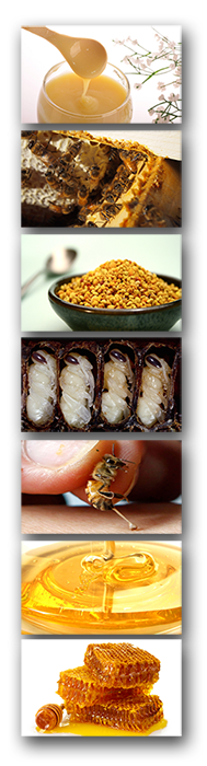 1. Royal Jelly : It is a creamy-white sticky fluid, strongly acidic, with a prudent odour and bitter taste. It enhances metabolism, sexual ability and performance, improving hormone balance, menopause and the related symptoms, lowering bad cholesterol and blood sugar, and reducing skin blemishes and wrinkles.
